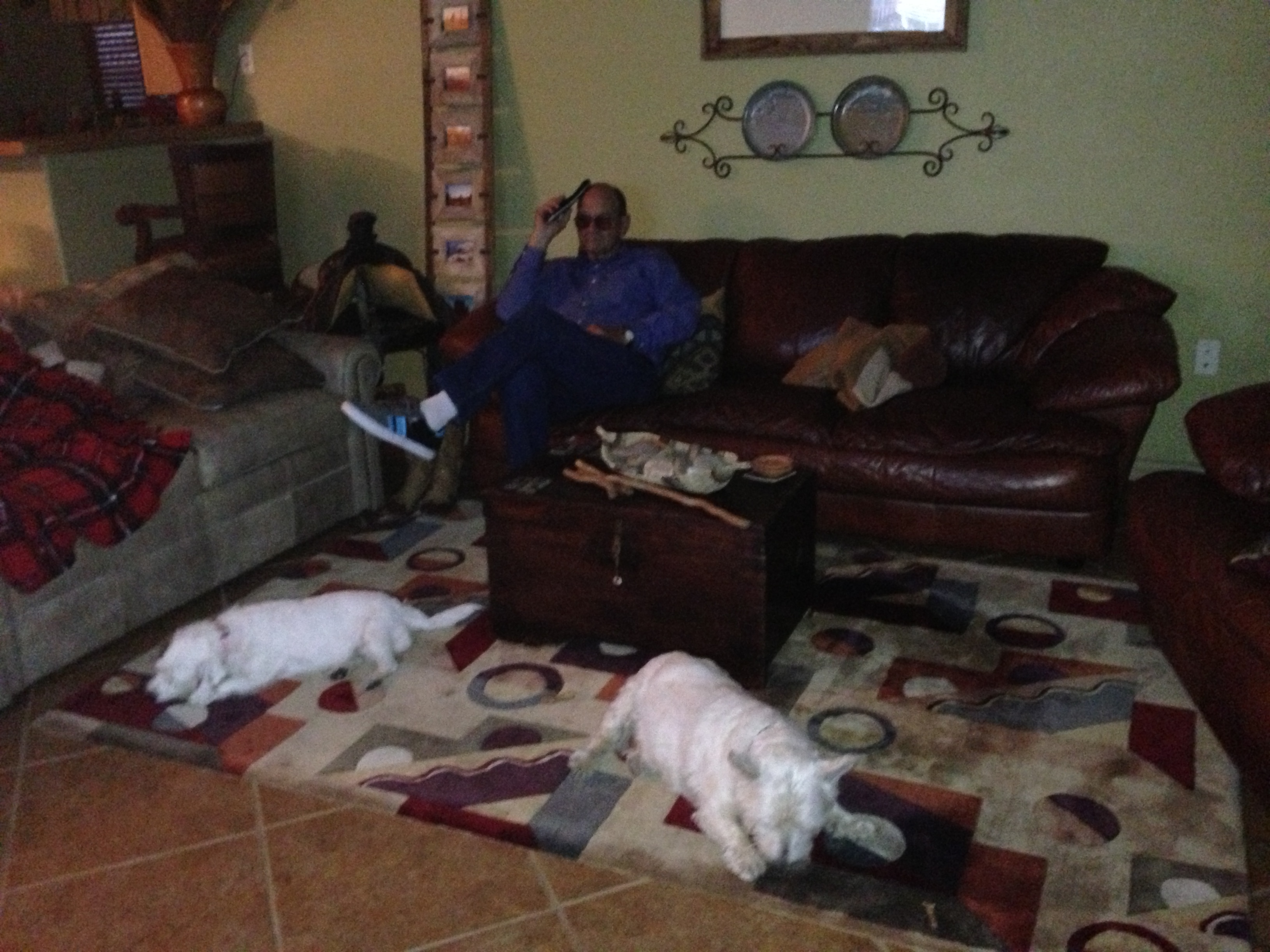 Charlee growled at the tiny “Mac-too” (named by my mom, of course, after the late Mac). After being scolded for an attempted snap at him, Charlee just completely ignored Mac-too and tried to coax Nano and Grand Jack back to reality, i.e., Charlee is the favorite. Needless to say, Nano and Grand Jack’s typical 20-minute visit was plenty for her today.