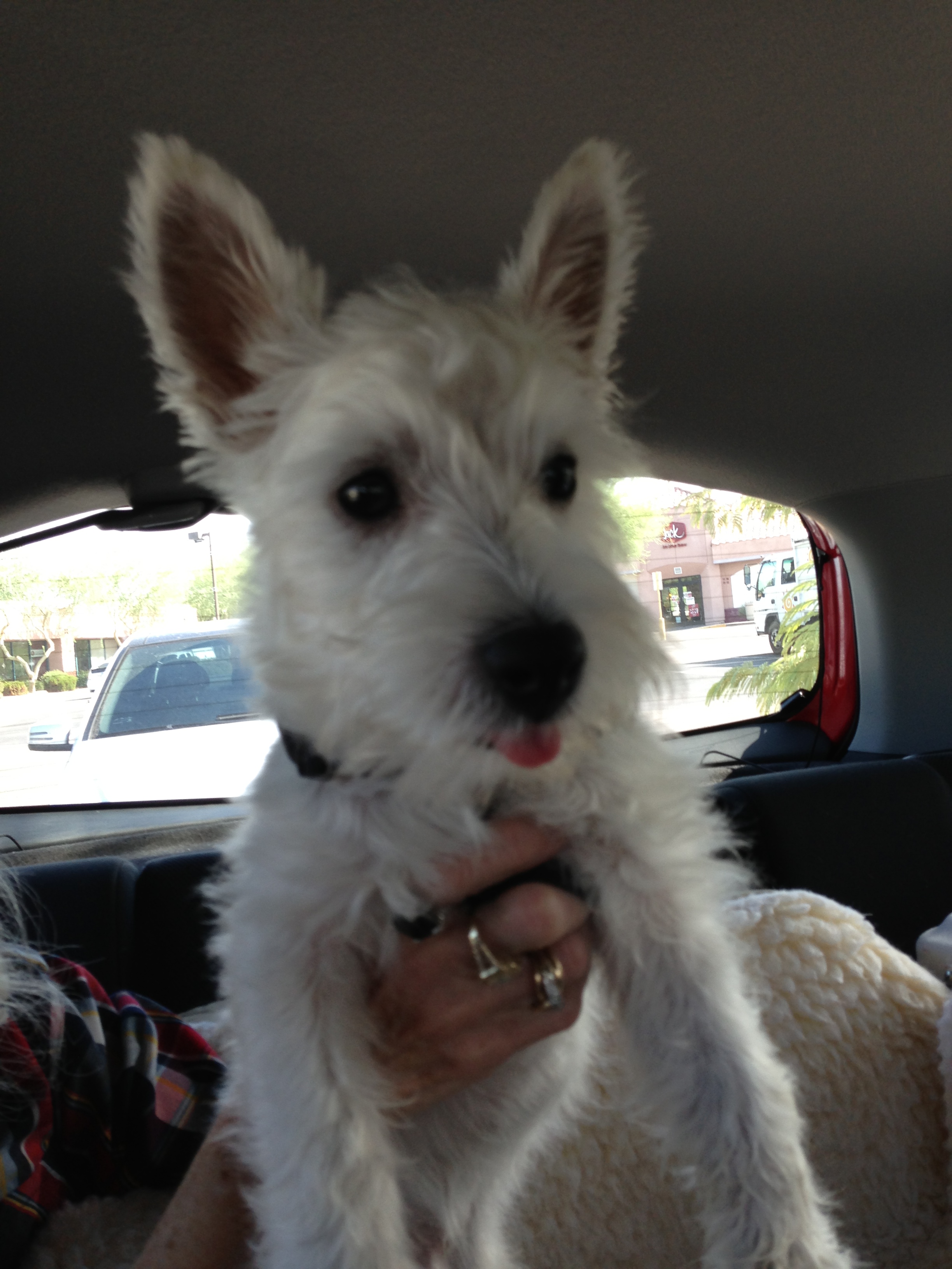 Charlee: Sure. That would be Mac-too, my grandparents’ new Westie puppy. I wasn’t exactly thrilled about him … maybe somewhat jealous, according to the blog post. We’re okay now though. He understands I am still the favorite.