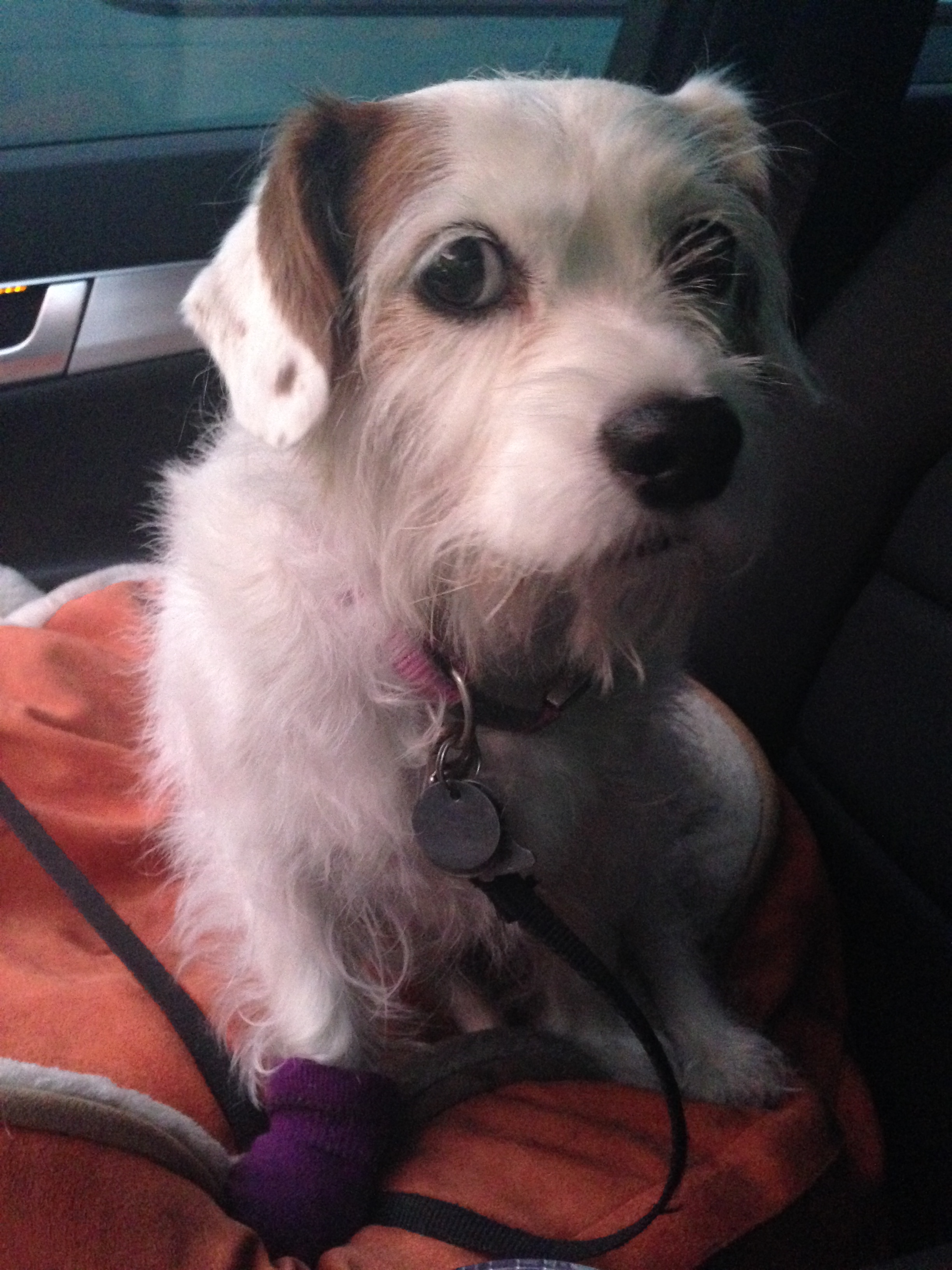 I, of course, was elated. It’s a puppy! Charlee, however, sized up the situation pretty quickly … no more impromptu visits by Nano and Grand Jack simply to take her for a ride or a walk or give her a belly rub or a treat. (Truly, the past six weeks have been bliss for her. But that bliss ended abruptly at 2:30 p.m. today.)